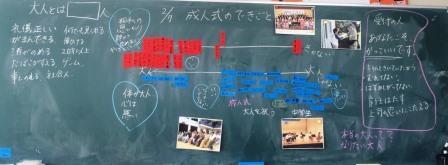 本日は、学年で取り組んだ道徳をご紹介したいと思います。「成人式」の様子から、大人について学びました。