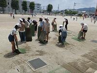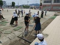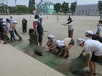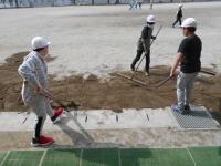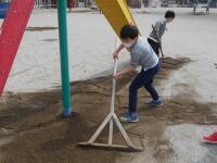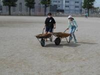 雨や風大雨で校庭の砂がだんだん少なくなり困る、運動するのに危険注意なので学校施設課に相談したところ、砂を用意してくださいましたキラキラ凹んでいるところや遊具の下など、怪我しやすい場所重要を中心に砂を運んだり汗・焦るならしたり汗・焦るする作業を最高学年の6年生にっこりに依頼しました。