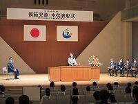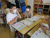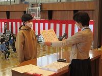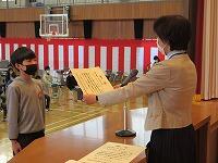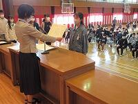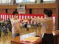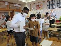 最後に、全員グループに「受講証ノート・レポート」をいただき、代表児童が受取りました。