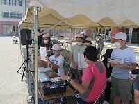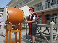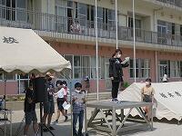 放送係星はマイクを通してお知らせアナウンスの練習を行い、各組の団長さんにっこりと団旗担当キラキラも動きを確認しました。