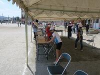まず5時間目、学年全体で気合お知らせを入れたら、、、机・いすの設営急ぎや観覧席づくり急ぎ、ライン引き急ぎ、校庭の石拾い急ぎなどを学級単位で行いました。