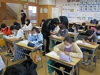 高学年むけのちょっと高度なイングリッシュクイズキラキラもありました。昼休みには、さっそくクイズキラキラの答えを鉛筆書きに、たくさんの児童笑うが放送室前に来てくれました。