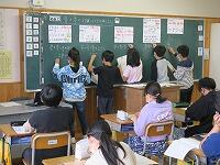 一人一人が考えた鉛筆ことは、考えを広めたり了解深めたりピースできるように、少人数(トリオ学習キラキラ)で伝え合いお知らせました。ワークシートノート・レポートには「自分の考えひらめき」の下に「友だちの考えグループ」を書く欄もあります。そして全体了解でも話し合い、いろいろな考えを共有しました。
