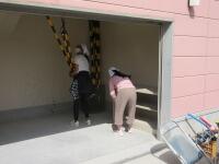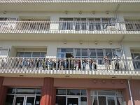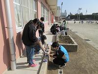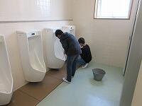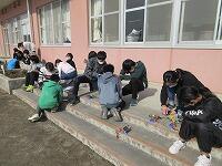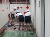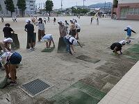 6年生のみなさん、どうもありがとう笑う。手際よく花丸、きれいにしてくれましたね。トイレに来ていた1年生星も、「お兄さん、どうもありがとうございます。」とお礼を言っていました了解。すてきな光景です。昇降口の階段下では、今年度も、環境委員会星の児童が、みんなで協力して花丸、グリーンマットの砂取り急ぎ活動を行っていました。