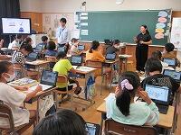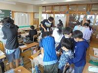 6年生は理科室理科・実験で何やら実験中理科・実験、のぞいてみると、、、「身近な池や川で見られる小さな生物キラキラについて虫眼鏡調べよう」を学習のめあて星に、みんなで顕微鏡キラキラをのぞいています。児童が持ち寄った「池汗・焦るや川汗・焦るの水」や、八城先生ががんばって急ぎ汲んできた「県庁堀汗・焦るの水」の中にいる「小さな生き物キラキラ」を確かめていました。