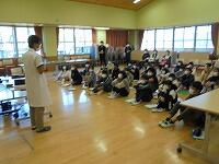 今日は、学校歯科医の新井先生に来校いただき、6年生の歯科検診キラキラを日惜ホールで行いました。さすが6年生星、静かに並んで了解順番を待つことができました。