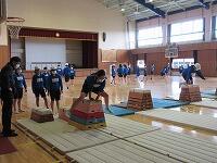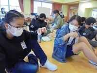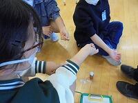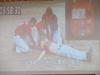 次に『胸骨圧迫急ぎ』のしかたを体験しました。救急車病院が到着するまで、AED!が到着するまで「5cmの深さを目安に・強く!・速く急ぎ・絶え間なく汗・焦る」行うことが大切星です。人をお知らせ呼んで交代了解しながら『胸骨圧迫急ぎ』を続ける方法も体験ピースしました。