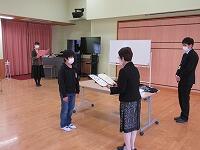 まずは並んでごあいさつ「よろしくお願いします。お知らせ