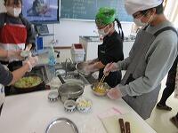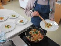 最後に、盛り付けキラキラです。事前にOK並べておいた食器音楽に、班のみんなの分グループを盛り付けます汗・焦る。それと同時に、先生への試食用合格?!の盛り付けも行います。そして、それぞれの班のアピールポイントピースを担当の先生に伝えてお知らせいきます。