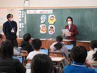 今日は、ジェラ先生の来校日、6の1と5年生の各教室で、ジェラ先生との最初の授業会議・研修があり、ジェラ先生が自己紹介お知らせをしてくださいました。ジェラ先生のふるさとフィリピンキラキラのことや、ジェラ先生キラキラのことを画像視聴覚で紹介してくださったので、とても楽しく笑う、よく分かりました。