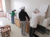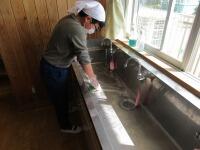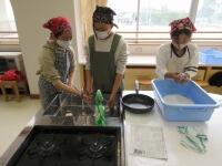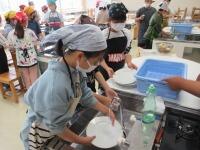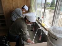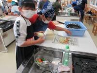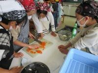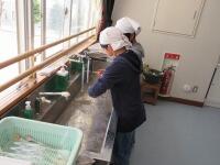 まず、器具や食器類を洗って汗・焦る、調理の準備を整えます急ぎ。同時に、役割を分担してグループ、タマネギの皮をむいたりにっこり他の野菜を洗ったり笑う手際よく花丸進めていますキラキラ