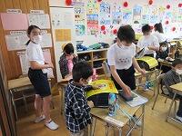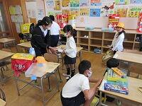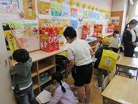 大切なお手紙ノート・レポートは先生の机に出して、黄色い帽子をランドセルにしまいましょう。ロッカーにランドセル遠足を片付けるお手伝いもしています。名札星をつけてもらった1年生笑うもいました。