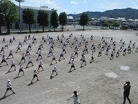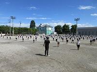 今年の運動会キラキラ、『魂のソーラン急ぎ』は5・6年生笑う2学年合同ピースで演技します。今日は、初めて2学年一緒に校庭に出て練習汗・焦るを行いました。野口先生から今日の練習のめあて星を聴いたら、間隔をとって、さっそく始めましょう。「かまえ!