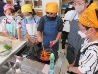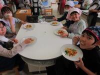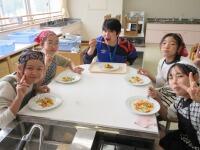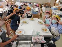 「いただきます笑う。」準備ができた班グループから、「いろどり炒め」を試食給食・食事していきます。「タマネギが甘い。」、「塩加減がちょうどよかった了解。」自分たちグループで作った、野菜炒め王冠の味は格別キラキラでした。この後、5/18(木)には6年2組グループ、5/19(金)には6年1組グループが調理実習家庭科・調理を行う予定です。これからも、栄養バランスイベントを考えた食事を意識していきたいですねキラキラ