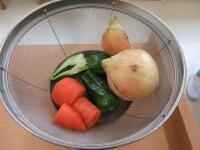 次に、野菜1ツ星やハム1ツ星を包丁星で適切な大きさに切りますキラキラ