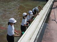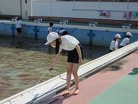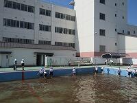 伏し浮き・だるま浮き・け伸び、、、そして、お楽しみの流れるプール笑う。大きな流れ了解ができ上ったところで、、、「逆回り~!。」「花丸笑う!ピース。」この後、バタ足や手のかきを確認虫眼鏡して、25m了解の縦方向に泳ぐ練習汗・焦るを行いました。時間いっぱい、たっぷりと水泳学習に取り組みました。