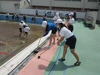 そして、今日!。「学校学校のために」と『プール清掃汗・焦る』に取り組んでくれました。まず1時間目は6の2にっこりのみなさん。