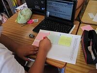 一人ずつ自分の考えを伝えお知らせながら、グループで1枚の紙に貼りだしていき、共通了解の考えごとにまとめました。