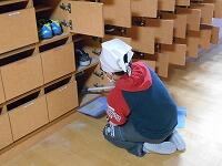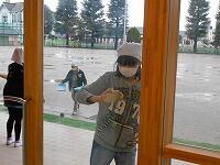 昇降口の靴箱の中、靴箱の上のブルーシート、扉のガラス、玄関タイル、どれもきれいになりました。
