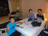 おなかがいっぱいになったところでインターコンチネンタルホテルへ向かいました。立派なホテルにやや緊張しながら入りましたが、部屋ではみんなリラックスした様子で過ごしていました。