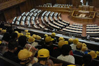 2日目最初の目的地、国会議事堂に到着。テレビで見たことがある場所を見学し、日本の政治を意識できたような気がします。