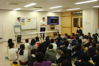 たばこやアルコールに関することを中心とした内容で、たばこの害を目で見る実験やアルコールの耐性を調べるパッチテストなど、体験の時間もあり、子どもたちは興味深々で先生のお話に聞き入っていました。