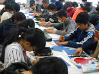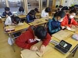 6年生が1枚1枚、ていねいに、心を込めて彫っています。