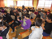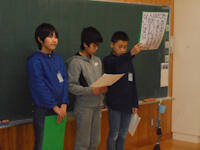 全体で群読の発表までおえると、クラスに分かれてのグループ発表です。どの班も自分たちで調べ、まとめたことをいろいろ工夫しながらしっかりと発表できました。