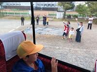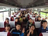 朝のバスの中。いつもより早起きしたせいか、やや眠そうな子も。1時間もするといつもの元気が戻り、バスレクを楽しんでいました。