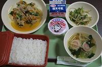 』で、「ごはん・牛乳・豚肉のしょうが焼き・かんぴょう入りサラダ・具だくさんみそ汁」の内容でした。