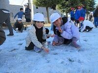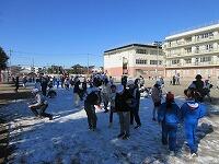 一列に並んで花丸車に気をつけて車登校することができました。寒さ雪に負けずに元気な笑うあいさつもできるといいですね。