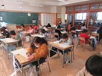 みなさん、よい姿勢で了解発表を聞くことができています。校長先生の話お知らせに続いて、校歌音楽も元気よく歌いました。終業式後には、児童指導担当の下無敷先生から冬休み雪の過ごし方についてのお話がありました。
