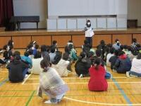 まず、 今 年度の登校班ごとに整列し、担当の先生から編制の仕方について話