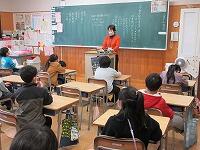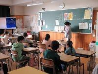 を発表し、続けて校長先生のお話を聞きました。各教室では、大型テレビ