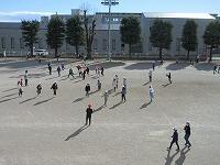 朝、登校した後にランドセルを教室に置いてから、校庭に出てきて、走っている