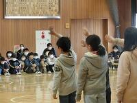 そして、班のメンバーに手本を示して並んでもらい、6年生を見送ります。