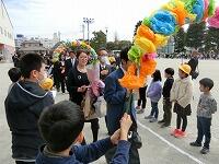強風の中でしたが、雨天のためできずにいた、校庭での見送りの練習を行いました。