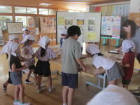 1年生では、国語の「おおきなかぶ」で、登場人物になりきって音読しました。一人一人が自分の役割になりきって上手にセリフを言えました。また、友達のよいところに気付き、感想も上手に発表できました。