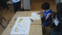話合い活動が終わると、他の班の作った地図を見に行き、いろいろな考えに触れていました。