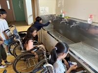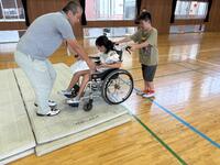 次に、実際に車いすに乗り、水道で手を洗ったり、段差があるところを通ったり、落ちているものを拾ったりする体験をしました。