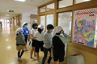がたくさん集まって、図書室前の廊下に飾り付けられています。
