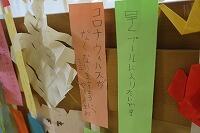 かわいい字で「お友だちがいっぱいできますように。」「早くプールに入りたいです。」「コロナウイルスがなくなりますように。」いろいろな願いごと