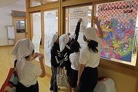 がたくさん集まって、図書室前の廊下に飾り付けられています。