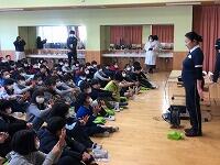 交通指導員さんの紹介の後、児童代表がお礼の言葉を述べ、花束の贈呈が行われました。