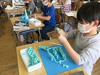 に粘土の作品作りに取り組んでいます。ねじったり、丸めたり、切ったり、かき出したり、粘土の形からイメージ