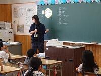校庭に集まった子どもたちにボランティアさんを紹介し、みんなで「よろしくお願いします。」と挨拶しました。