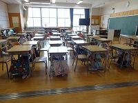 次に、地震発生の放送が流れると、子どもたちは黙ってすぐに机の下に入って頭を守る行動ができました。続いて避難指示の放送が流れると、担任の先生の指示に従い、「おかしもち」を守って校庭に避難できました。避難指示の放送から約5分で全員が校庭に避難できました。