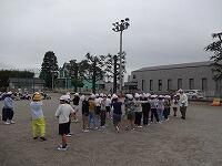 校庭では、校長先生と安全担当の先生から、突然地震が起きた時でも落ち着いて判断し、行動できるために訓練を行うことや、今日の行動がとてもしっかりできたことについて話を聴きました。