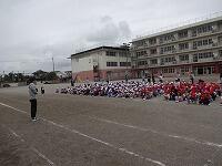 体育館では、校庭と同じ並び方で待っていました。一気に体育館に移動させるのは難しいため、学年ごとに集めたので時間がかかりましたが、みんな落ち着いて待つことができました。