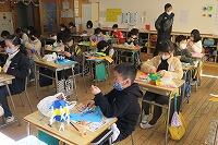 今日は4年1組のみなさんが、図工室を会場に実施しました。講師の先生方から絵手紙